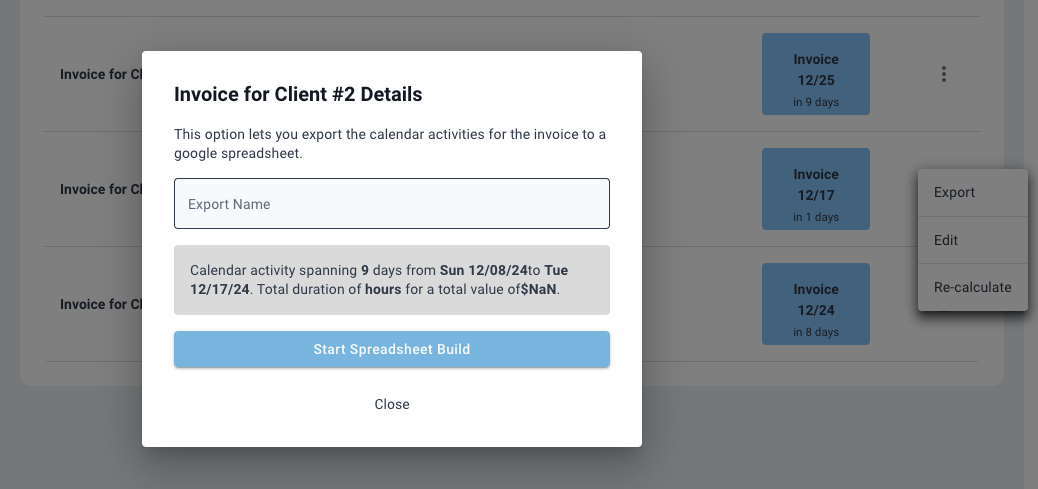 This feature allows you to seamlessly export queries or invoice hours directly from your Google Calendar to Google Spreadsheets. By doing so, you can provide your clients with detailed and accurate records, which is key to proving the value of your services. Ensuring that your clients have access to precise and comprehensive data helps in maintaining transparency and trust.